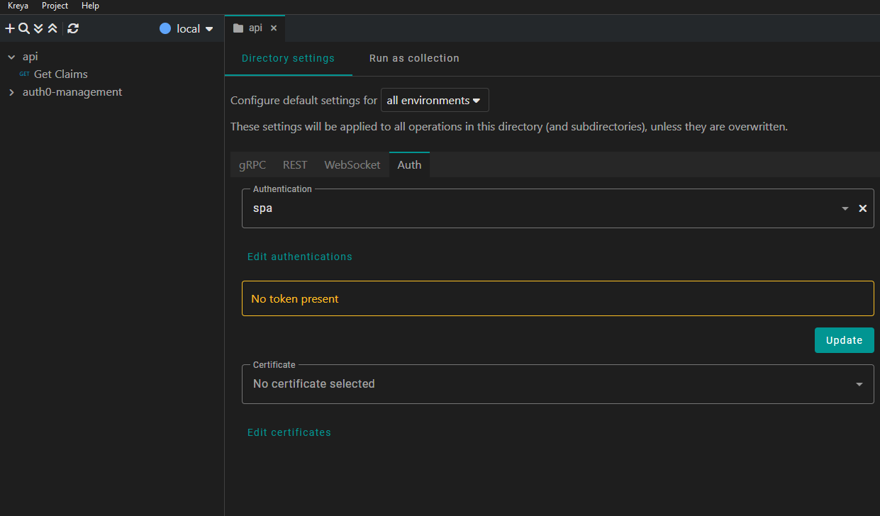 Whether you are working with machine-to-machine tasks or simulating complex single-page application user flows, Kreya's inheritance-based settings and automated token management make your development workflow faster and more secure.