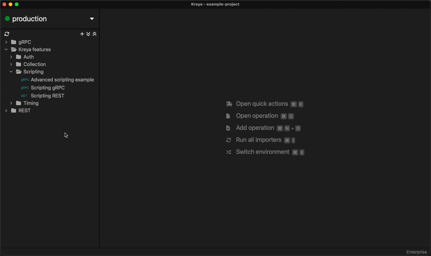 Kreya 1.14 brings you a lot of new features. Starting with running a directory as a collection, an Insomnia importer, automatic import of system environment variables and opening items in the file manager. The CLI now has the ability to invoke multiple collections with a single call and generate a JUnit test report. Scripting has been improved and trace messages can be filtered.