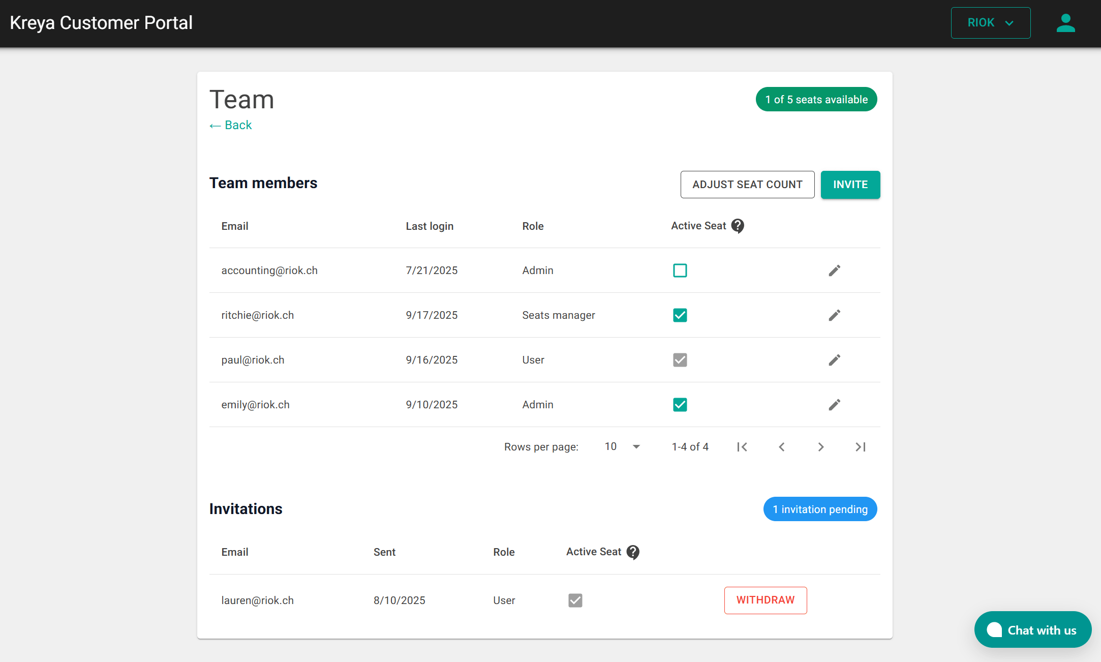 Additionally, the customer portal now features a new role called Seats Manager, which distinguishes between the billing administrator and the person responsible for managing user seats.